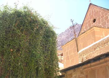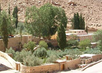 Этот православный монастырь расположен в 2 км от деревни. Бесплатное посещение монастыря всю неделю, кроме пятницы, субботы и православных праздников. Открыто только с 9.30 до 11.30. Требуется соответствующая одежда: сюда нельзя заходить женщинам в брюках, мини-юбках и платьях с открытыми плечами, а мужчинам в шортах. В 337 г. Елена — мать императора Константина, проникшись святостью этих мест, приказала построить небольшую часовню, посвященную Св. Деве Марии, на месте, где Моисей видел неопалимую купину. В 530 г. по приказу императора Юстиниана была построена большая базилика, ставшая в последствии церковью Преображения, и стены монастыря для защиты монахов от разбойничьих набегов. С тех пор монастырь приобрел вид неприступной крепости и устоял от набегов, от разрушения временем и землетрясений. За всю свою историю он никогда не разрушался и не захватывался.