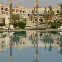 в 7 км от аэропорта Шарм-эль-Шейх, в 18 км от бухты Наама-Бей и в 33 км от Старого Города, в районе Nabq на первой линии (200 м от моря).