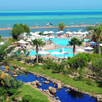 в 29 км от аэропорта Хургады, в 1 км от центра Эль-Гуны, на самом берегу моря и лагуны.